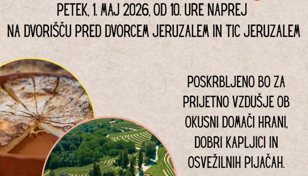 TIC JeruzalemPridružite se na sproščenem praznovanju praznika dela v čudovitem okolju Jeruzalema. Čaka vas prijetno druženje ob okusni domači hrani, kjer ne bo manjkalo pristnih lokalnih dobrot. Za žejo bo poskrbljeno z osvežilnimi pijačami, za pravo vzdušje pa tudi z dobro kapljico.