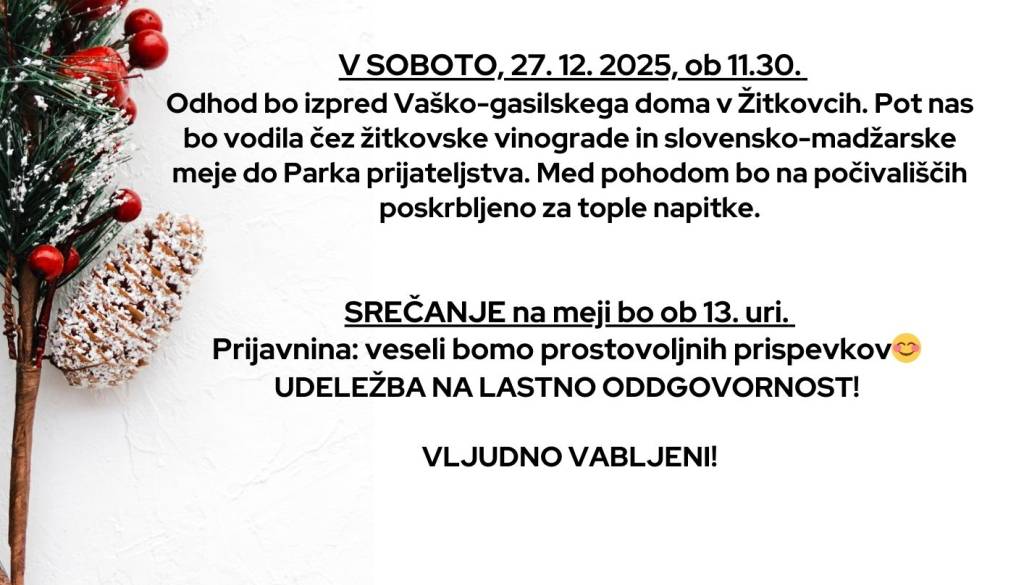 🔹 Odhod: izpred vaškega gasilskega doma v Žitkovcih