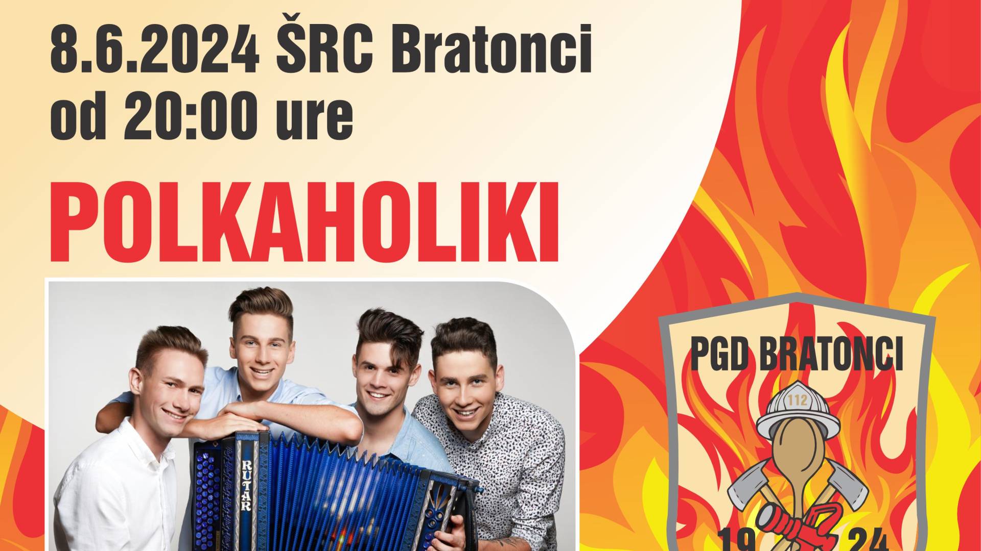 Nogometno igrišče BratonciVabljeni na gasilsko veselico ob 100. obletnici prostovoljnega gasilskega društva Bratonci. Vso noč nas bodo zabavali POLKAHOLIKI ‼‼