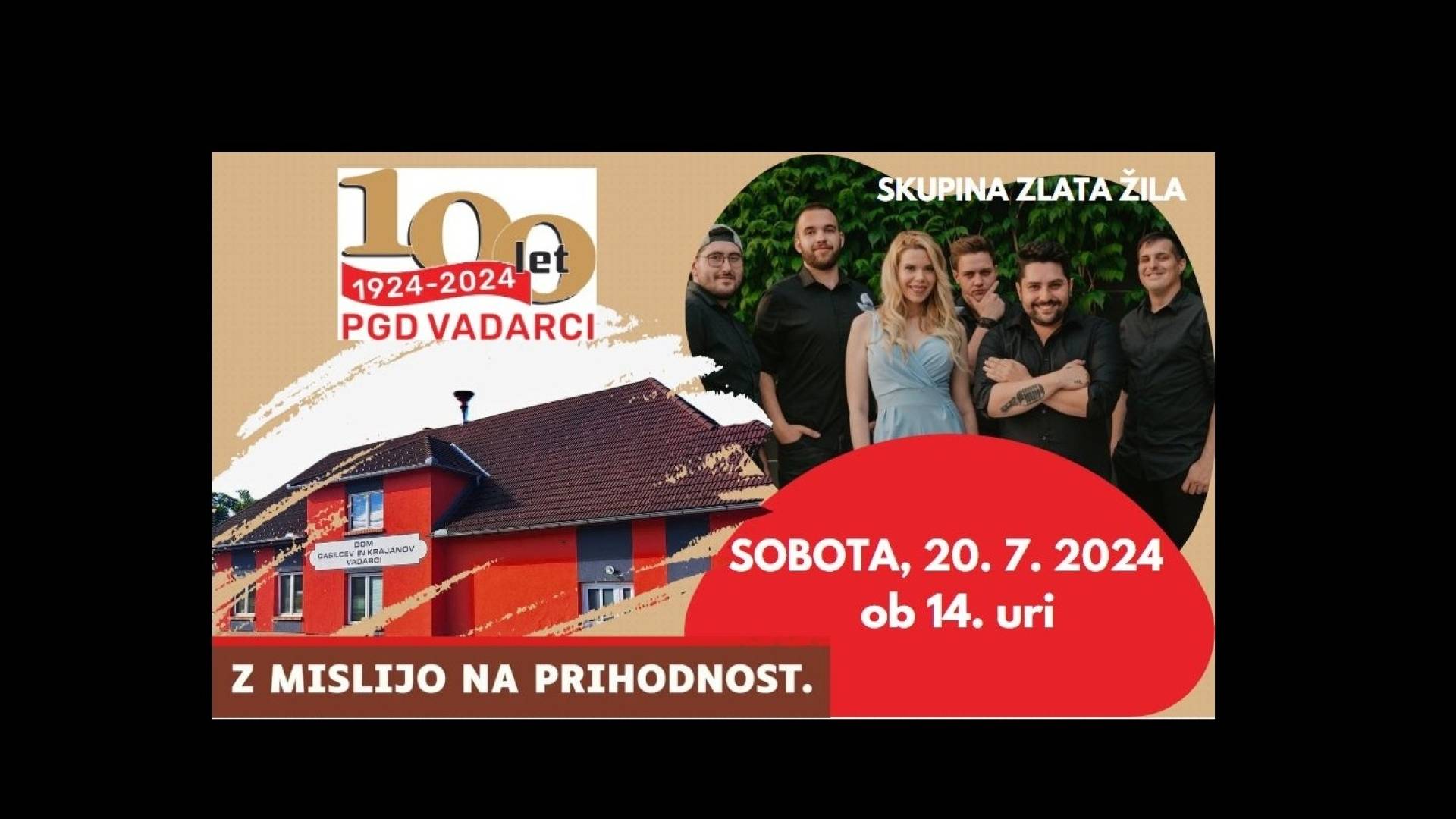Vadarci, 9265 PuconciVabimo Vas na osrednjo prireditev ob 100. obletnici PGD Vadarci, ki bo v soboto, 20. julija 2024, od 14. ure naprej, pri Domu gasilcev in krajanov v Vadarcih.