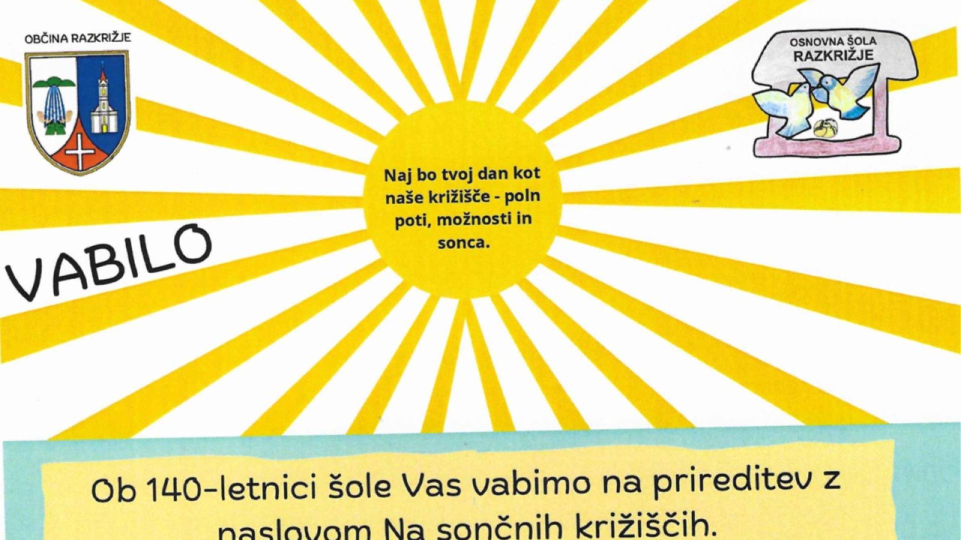 Vljudno vabljeni na slovesno prireditev NA SONČNIH KRIŽIŠČIH, ob 140-letnici šole na Razkrižju.