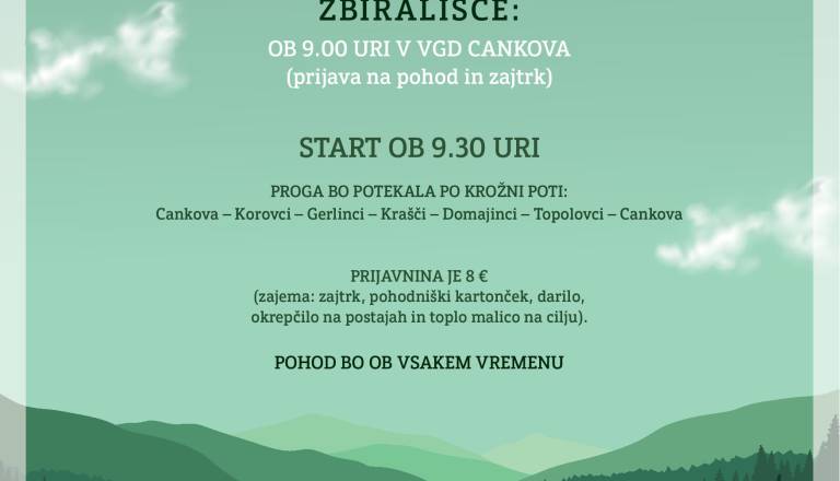 Ob 9.00 uri v VGD Cankova (prijava na pohod, zajtrk, pozdravni govor)