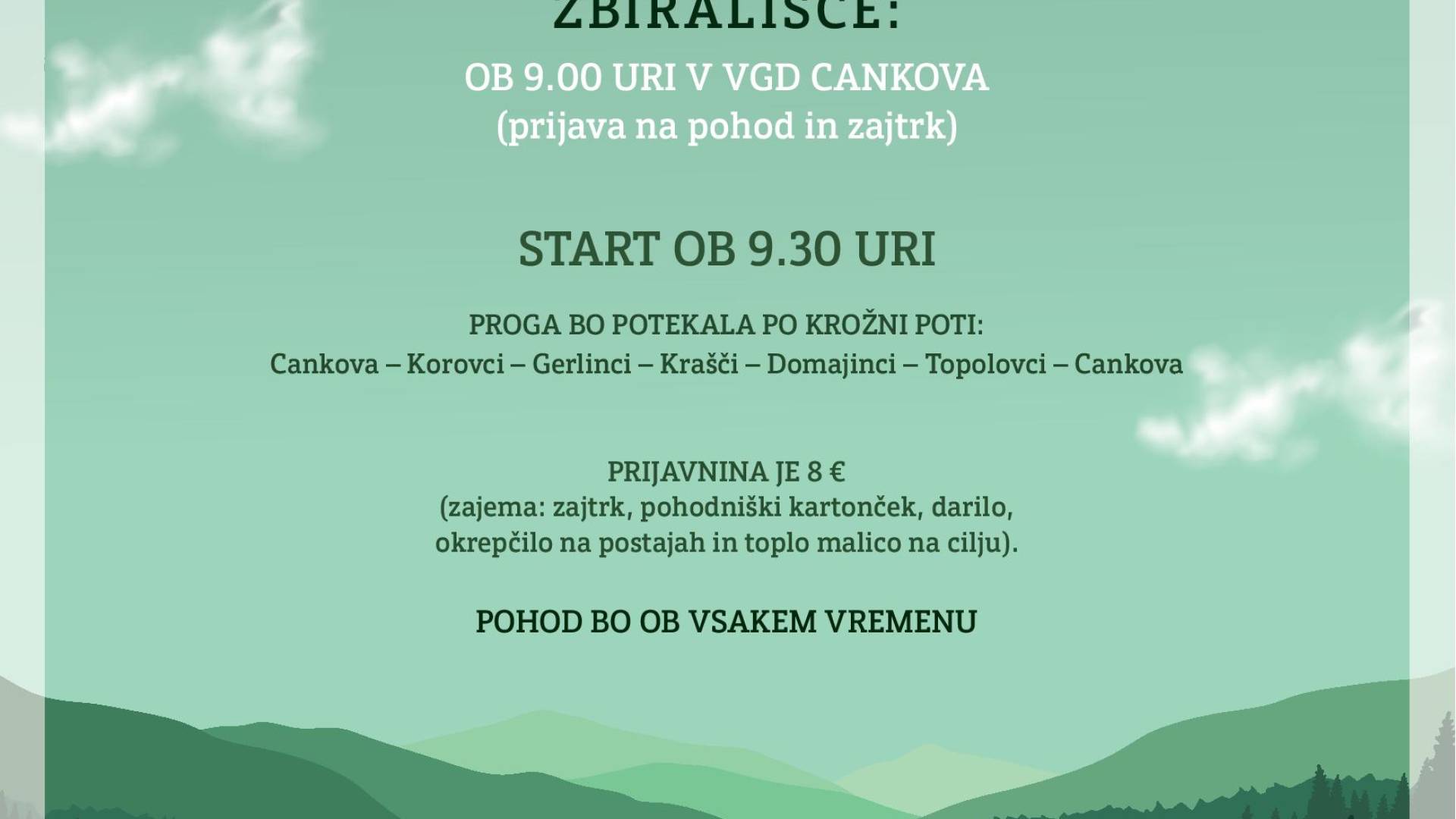 17. JOŽEFOV POHOD Boštjan Sinic | 3. marec 2019 21:49 v Termin Sobota, 16. marec 2019 9:00 - Sobota, 16. marec 2019 14:00 Lokacija VGD Cankova Več podatkov najdete na priloženem letaku.