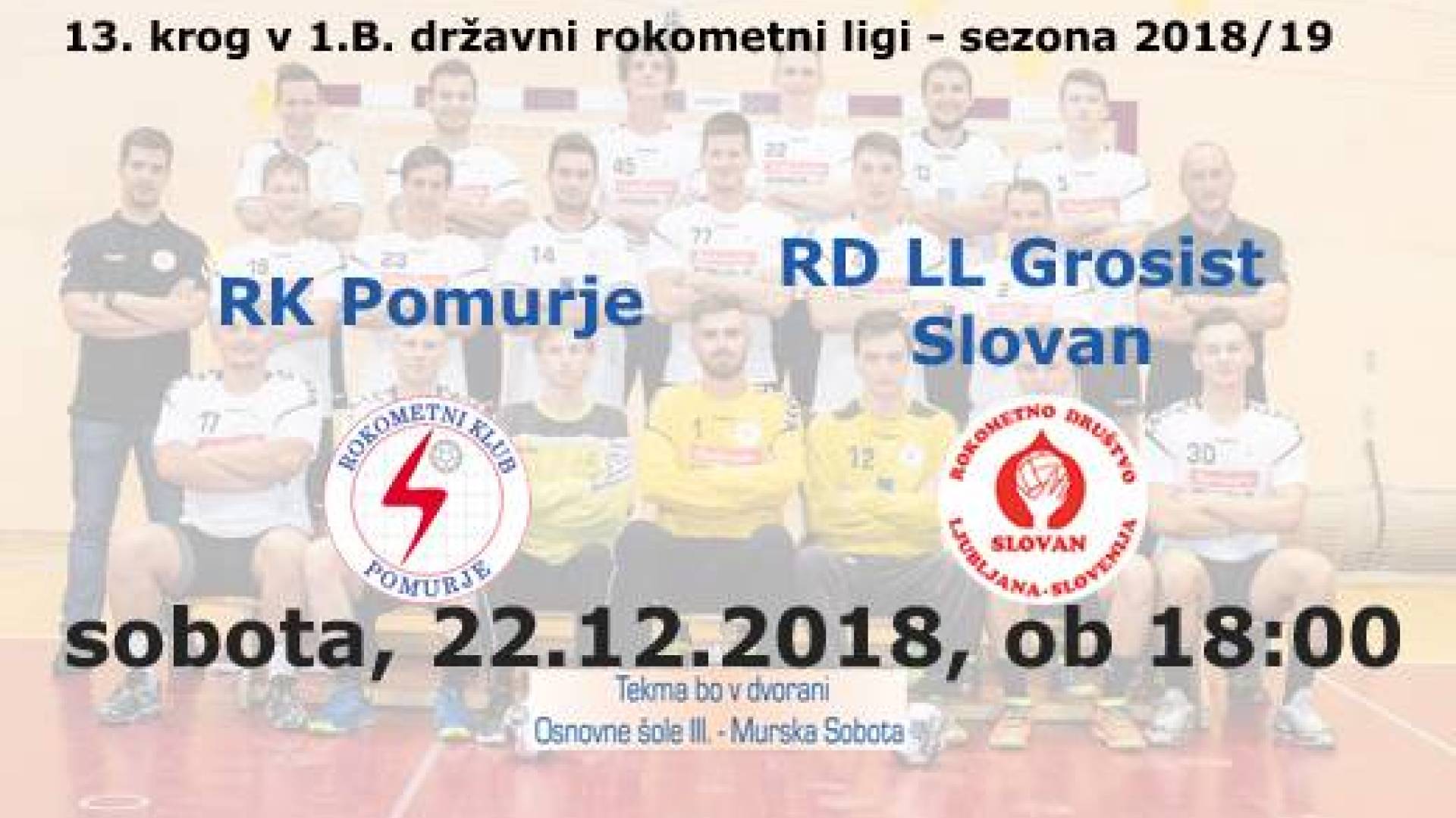 Športna dvorana OŠ III Murska SobotaRokometaši Pomurja se bodo v zadnji tekmi jesenskega dela prvenstva v 1.B rokometni ligi pomerili proti eni od vodilih ekip.