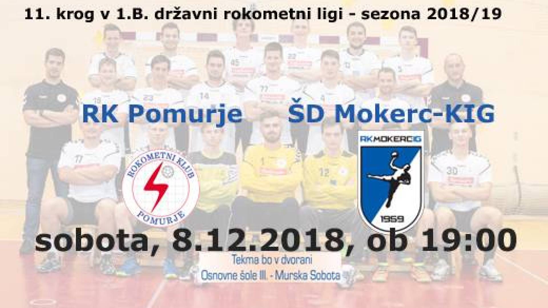 Športna dvorana OŠ III, Murska SobotaRokometaši Pomurja se bodo v 11. krogu 1.B državne rokometne lige pomerili proti ekipo Mokerc KIG, ki je trenutno na 10. mestu prvenstvene lestvice.
