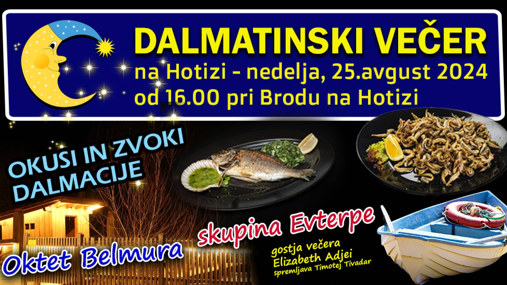 Hotiza, Hotiški brod pri ribiču TinčuVabimo vas na 2. dalmatinski večer na Hotizi, ki bo v nedeljo, 25. 8. 2024 od 16.00 naprej, pri brodu!