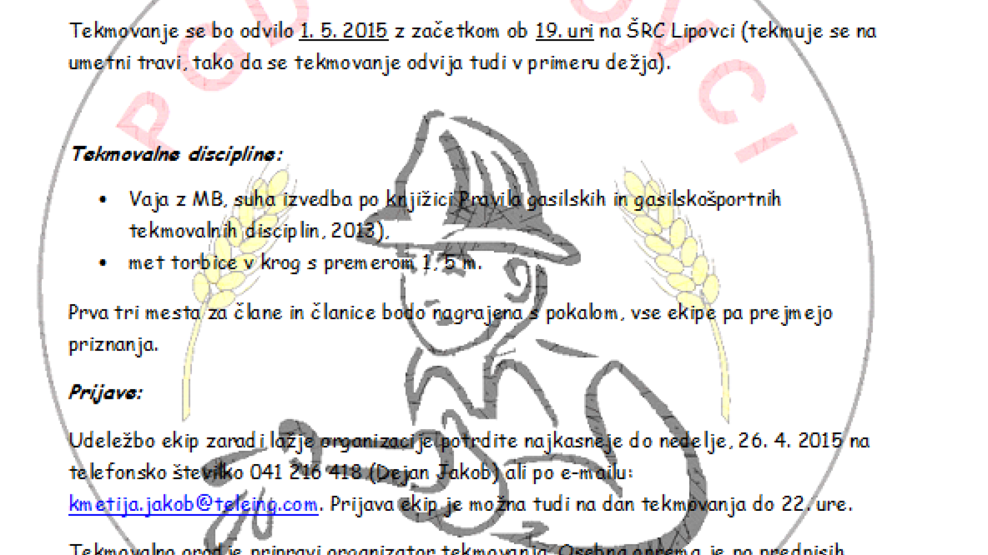 Za več informacij se obrnite na blagajnika PGD Lipovci, Dejana Jakoba (041 216 418).