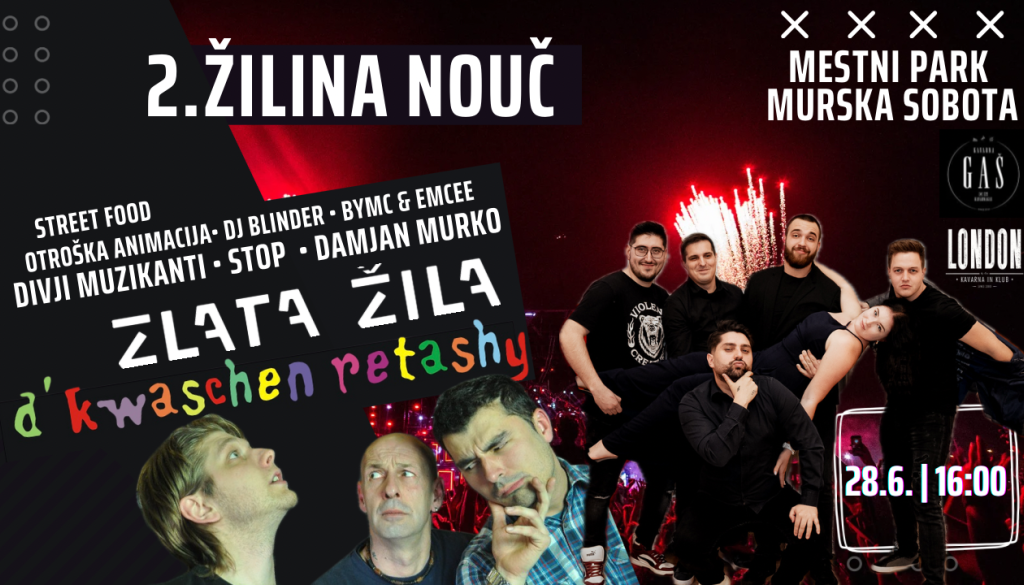 Mestni park Murska SobotaLansko leto smo LONDON BY GAŠ in ZLATA ŽILA združili moči in organizirali prvo ŽILINO NOUČ.