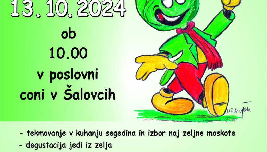 Degustacijske dobrote iz zelja bodo tudi letos dopolnjene z zanimivo gostinsko ponudbo domačih jedi, najmlajši pa se bodo zabavali na napihljivih igralih, zanje pripravljamo tudi animacijo in poslikavo obraza. Vstopnine ni. Organizatorji vabijo vse, ki želijo spoznati kulinariko in dodatno ponudbo vasi Občine Šalovci ter poskusiti jedi iz zelja.