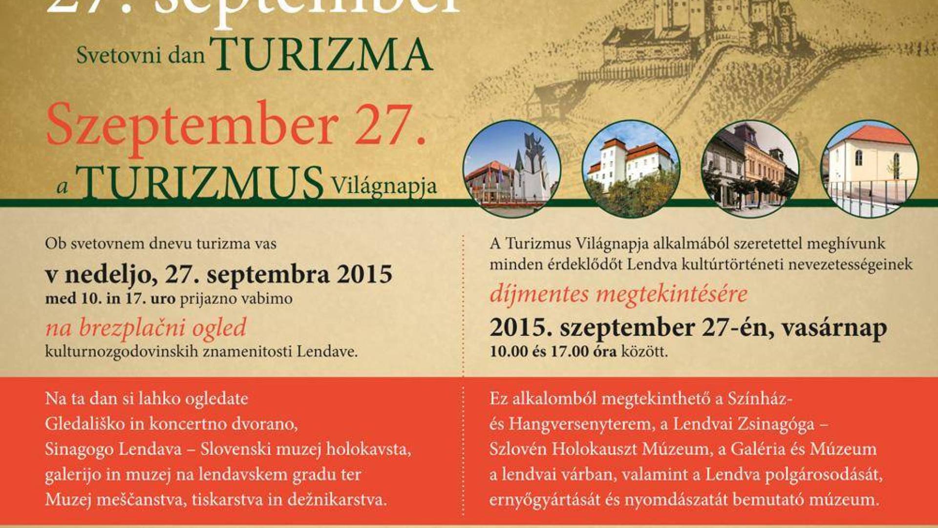 Gledališka in koncertna dvorana LendavaOb svetovnem dnevu turizma vas v nedeljo, 27. septembra 2015 med 10. in 17. uro prijazno vabimo na brezplačni ogled kulturnozgodovinskih znamenitosti Lendave.