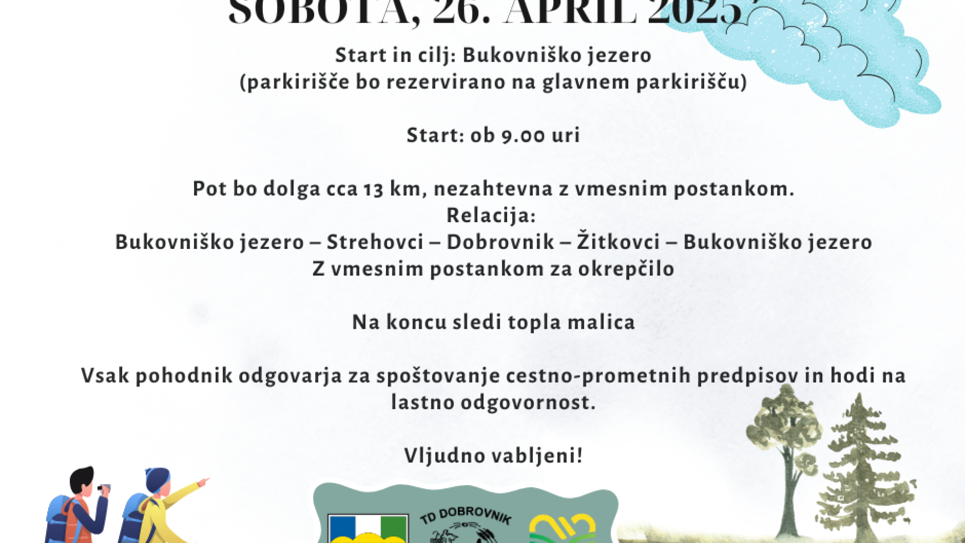 Obveščamo, da bo start in cilj pohoda pred kulturnim domom v Dobrovniku!!!
