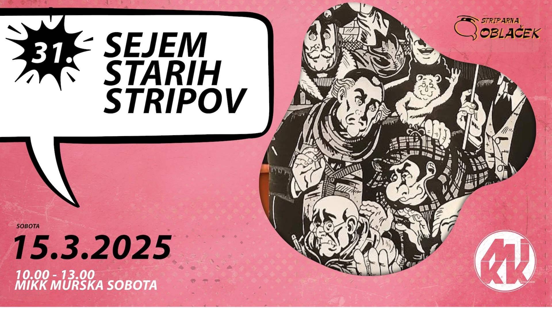31. sejem starih stripov bo potekal v soboto, 15. marca 2025, med 10. in 13. uro v MIKKovih klubskih prostorih.