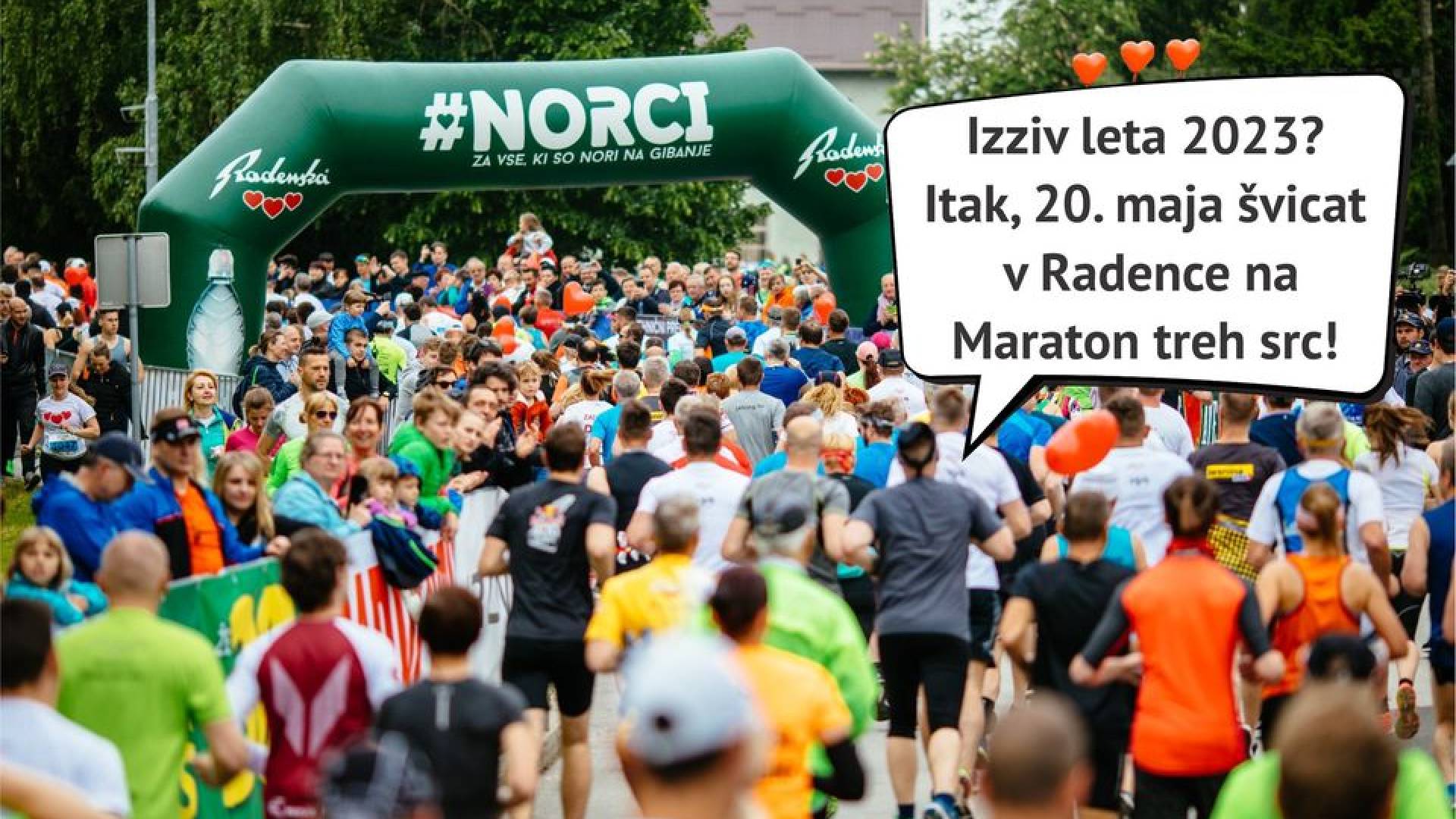 RadenciMaraton treh src, 41. izvedba v Radencih zajema tekaški del z uradno certificiranimi progami 42.195m, 21,098m, 10km in 5km. Za tekmovalnost in začetne tekaške korake bomo poskrbeli s Tekom veveričk in srčkov vašega ljubljenčka pa pripeljite na Tek s kužki. Tudi Nordijska hoja in Pohod treh src sta že dalj časa del naše prireditve. Tekaški dogodek se ponaša kot edini v Sloveniji z nazivom "Brez odpadkov" s tem pa skrbimo za dobro počutje vseh, ne le tekačev, na naši prireditvi. Vabljeni 20.5. 2023 v Radence.