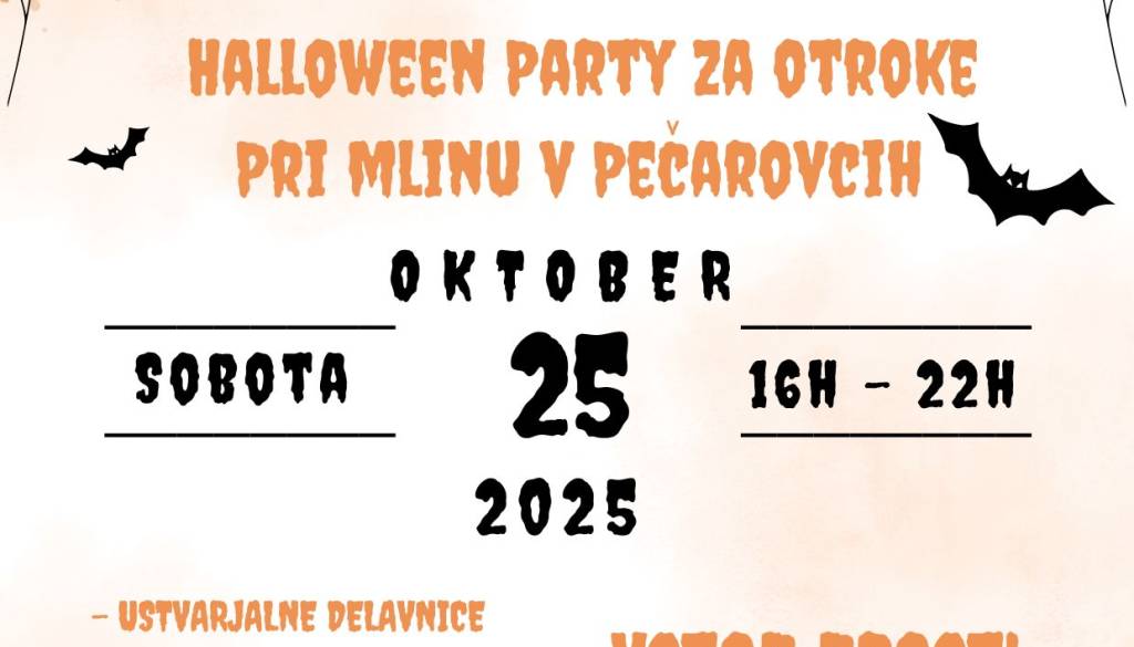 Že tradicionalno, 5. leto zapored, bomo v Zavodu mlin organizirali jesenske ustvarjalnice in zabavo na temo noči čarovnic. Otroci bodo lahko ustvarjali iz različnih naravnih materialov, tekmovali v mnogih igrah na prostem, se sladkali s čarovniškimi palačinkami in se zabavali. Poskrbljeno bo tudi za starše. Vstop je prost. Vabljeni.