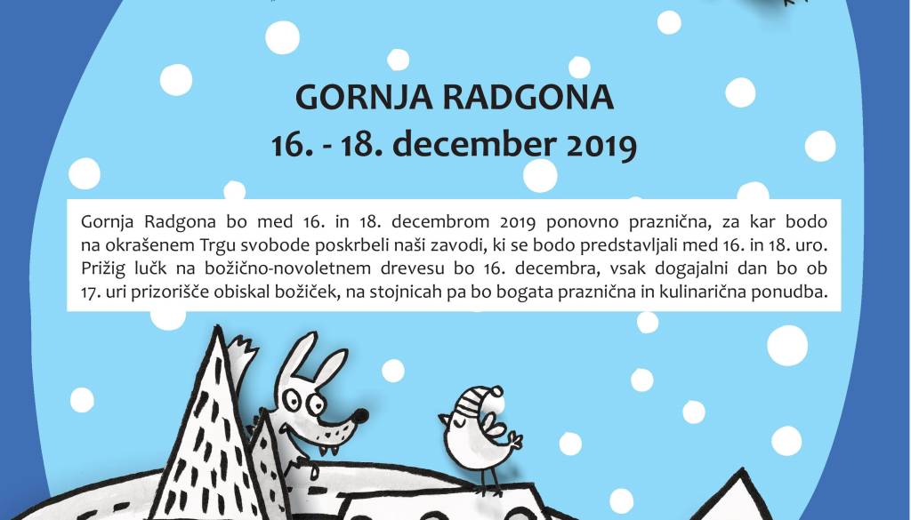 Nastopi naših najmlajših, osnovnih šol, folklornih skupin, glasbenih šol ter znana slovenska pevka ALYA nam bodo pričarali čudovito praznično vzdušje na Trgu svobode v Gornji Radgoni (pred knjižnico).