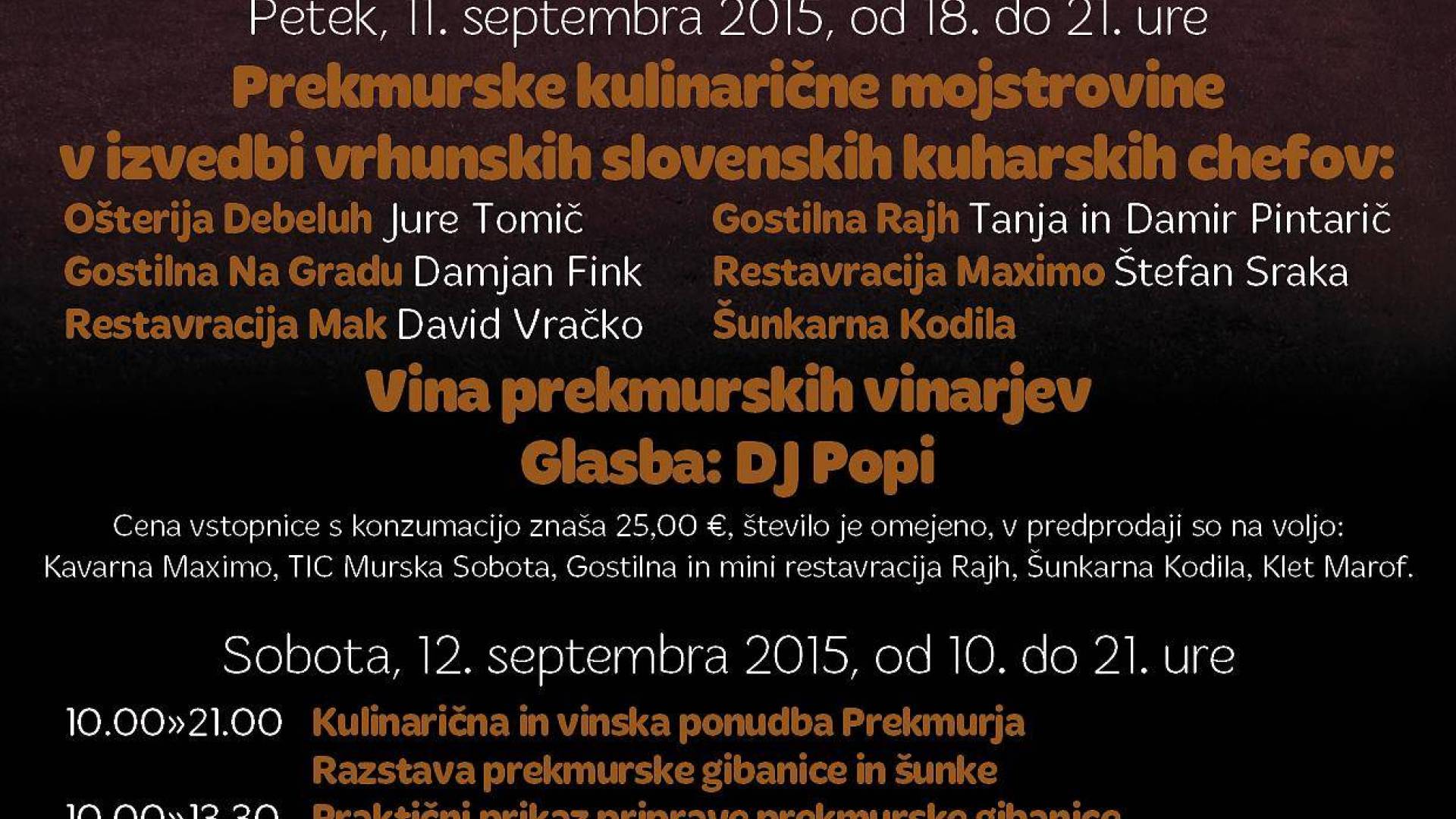 Grad Murska SobotaDruštvo za promocijo in zaščito prekmurskih dobrot organizira že šesti, tradicionalni dogodek “Festival prekmurske šunke in gibanice”, ki se bo odvijal v petek in soboto 11. in 12. septembra 2015, na grajskem dvorišču v Gradu Murska Sobota.