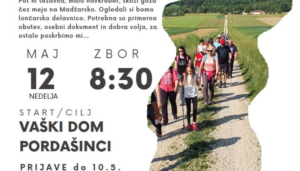 - zbiranje ob 8:30 uri pred vaškim domom v Pordašincih,