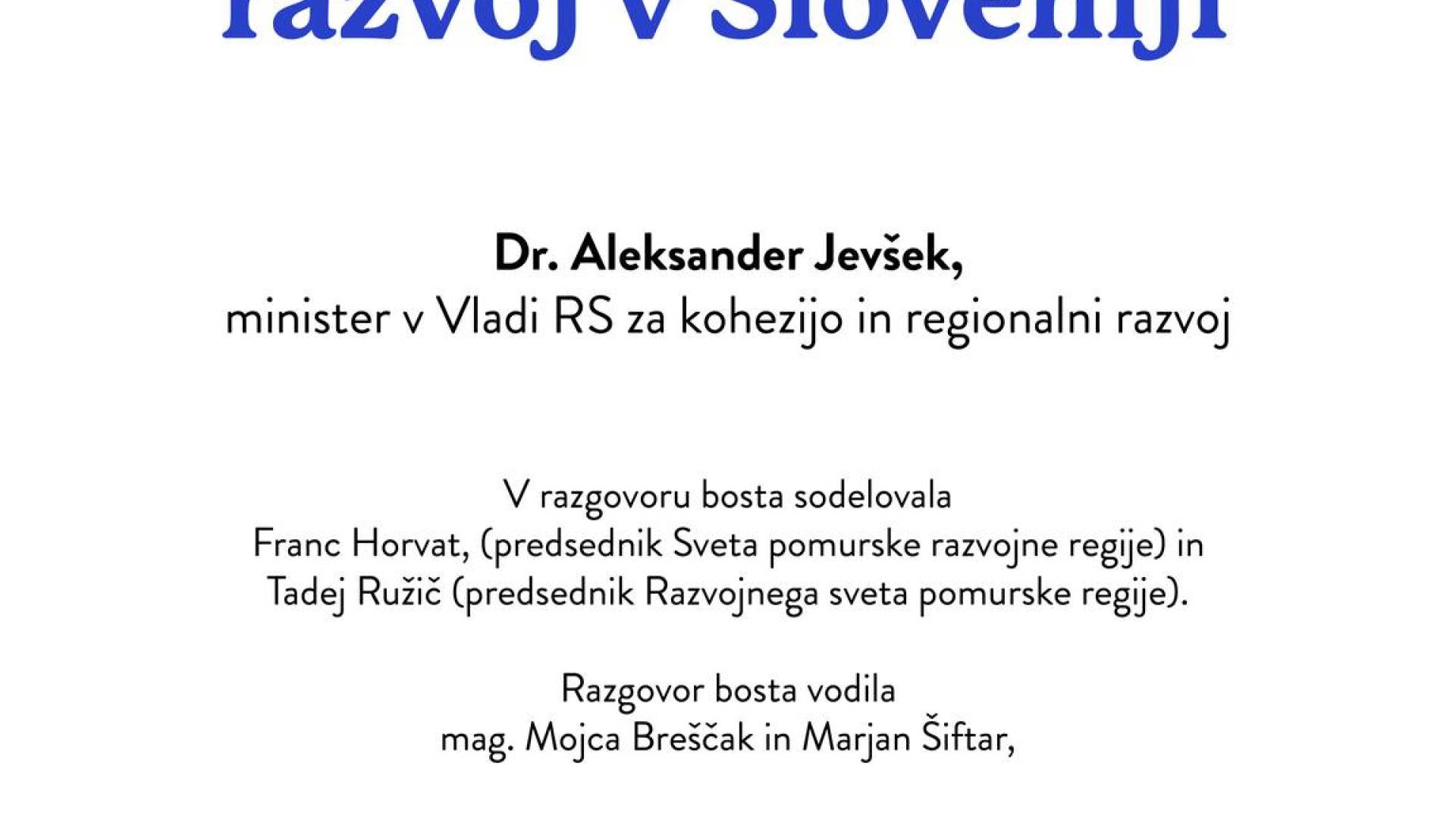 Pokrajinska in študijska knjižnica M. SobotaV razgovoru bosta sodelovala Franc Horvat, predsednik Sveta pomurske razvojne regije in Tadej Ružič, predsednik Razvojnega sveta pomurske regije.
