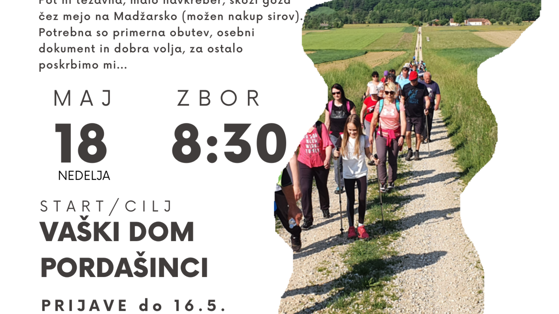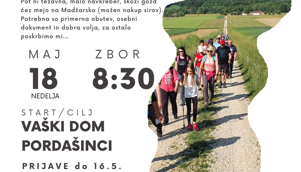 - zbiranje ob 8:30 uri pred vaškim domom v Pordašincih,
