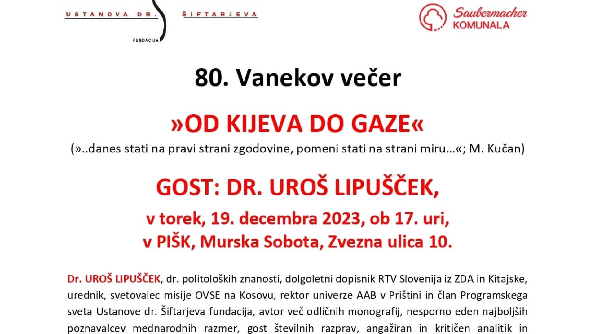 80. Vanekov večer z dr. Urošem Lipuščkom - Od Kijeva do Gaze