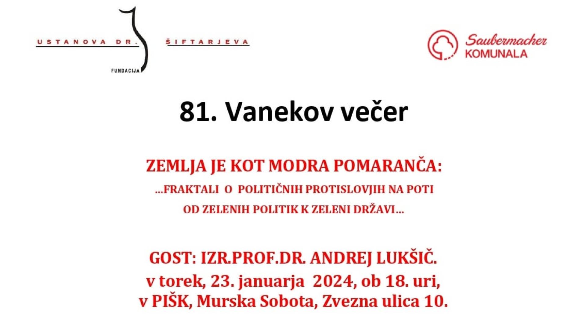 81. Vanekov večer - gost: izr. prof. dr. Andrej Lukšič