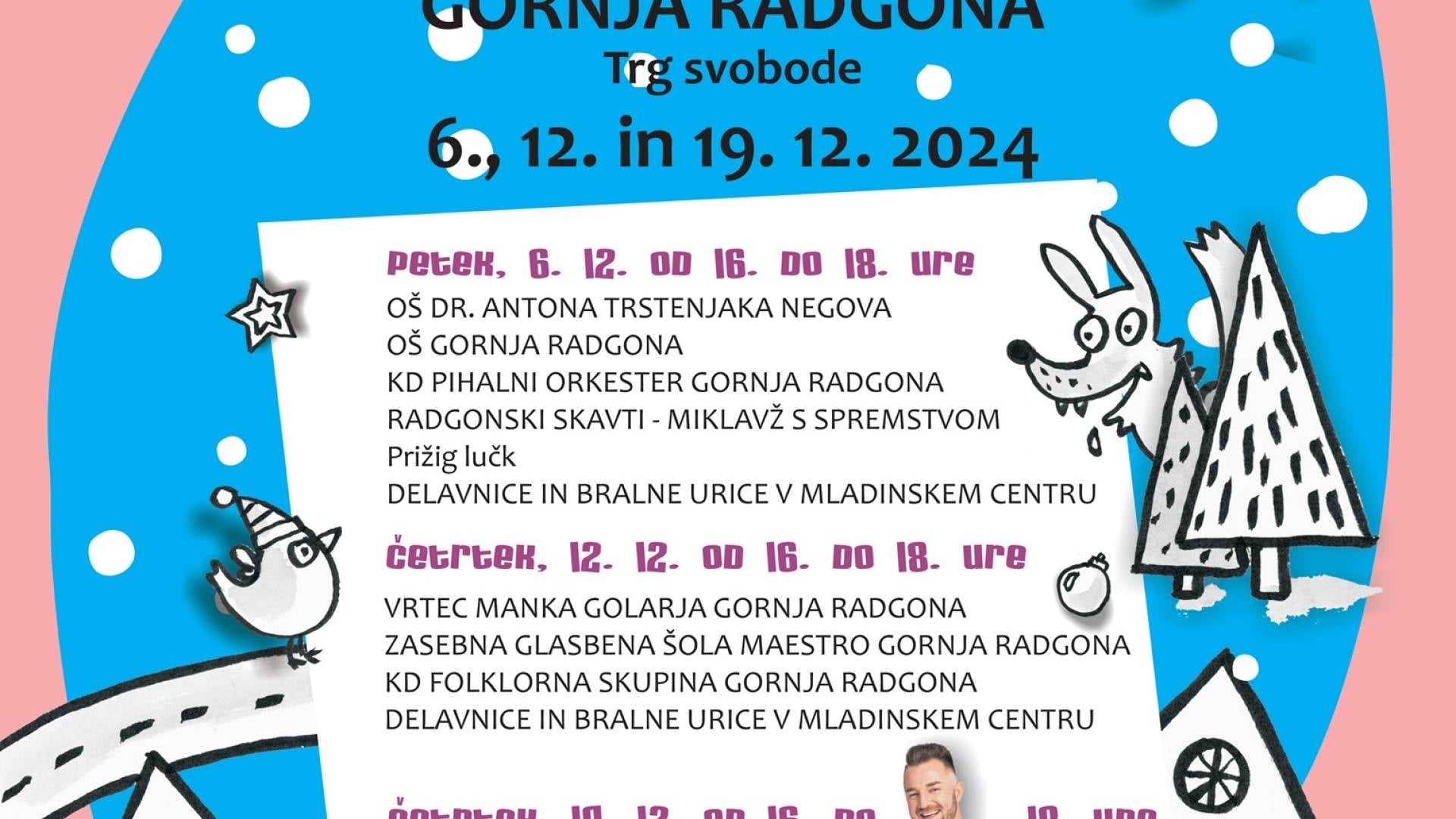 📣 Gornja Radgona bo letošnje praznične dni znova preživela v čarobnem vzdušju, saj bo zaživelo že 9. Pravljično mesto! Dogajanje bo potekalo v petek, 6. decembra, ter v četrtek, 12. in 19. decembra 2024, na prostoru pred Mladinskim centrom Gornja Radgona. 😍 ❄️⛄️