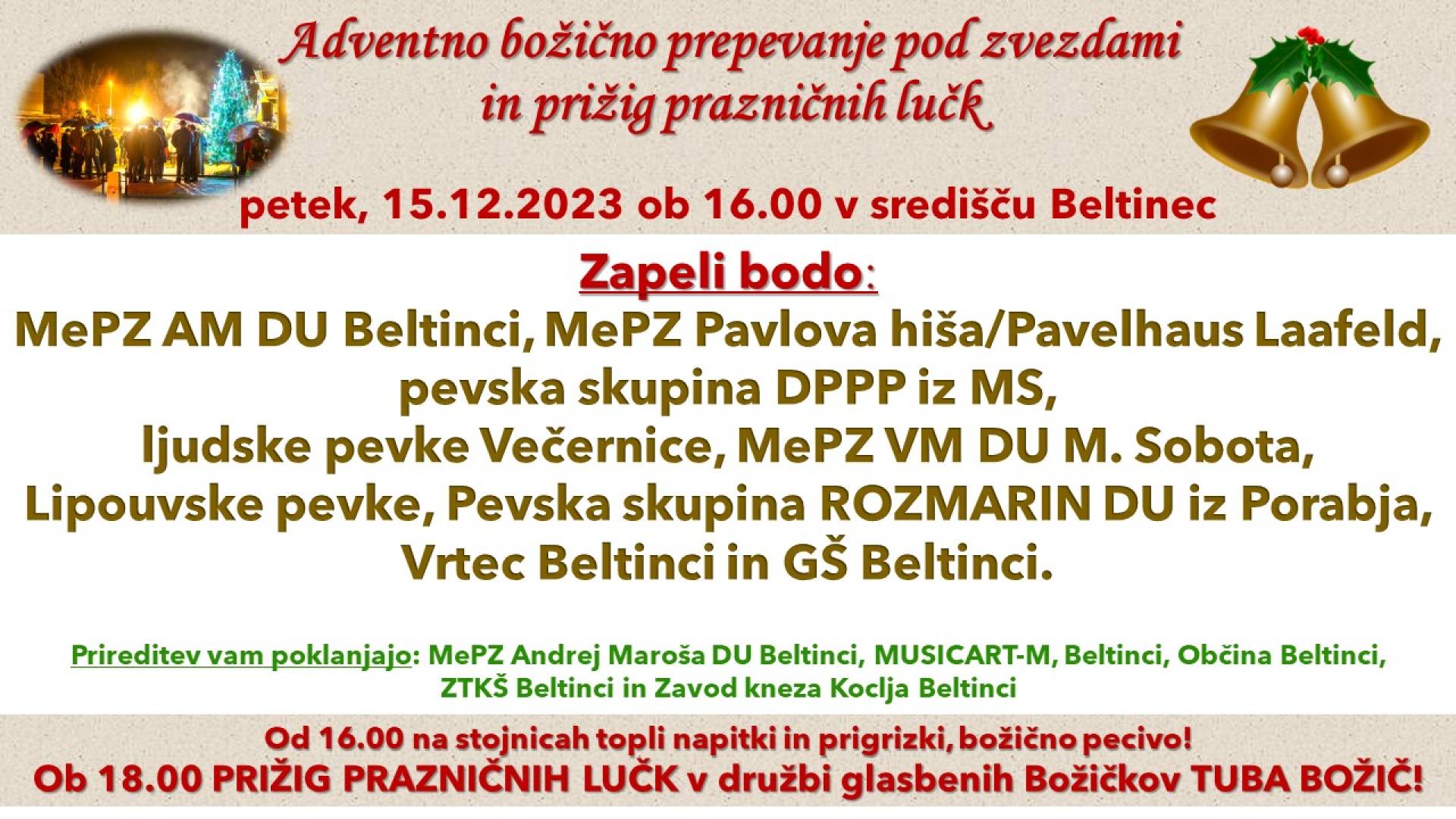 Prireditev vam poklanjajo: MePZ Andrej Maroša DU Beltinci, MUSICART-M, Beltinci, Občina Beltinci, ZTKŠ Beltinci in Zavod kneza Koclja Beltinci.