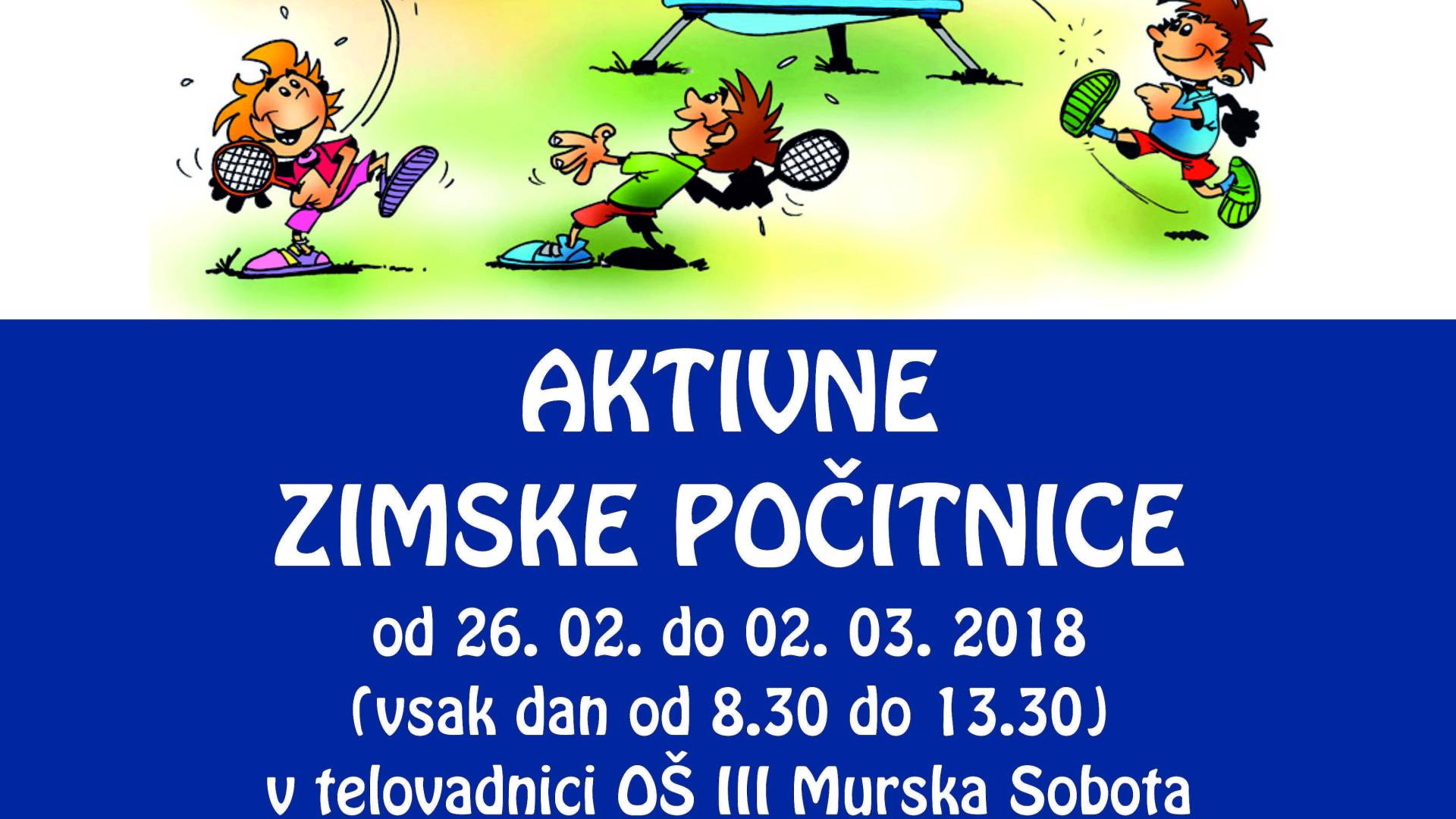 Zavod za kulturo, turizem in šport Murska Sobota bo tudi letos skupaj z mentorji iz športnih društev v času zimskih šolskih počitnic med 26. februarjem in 2. marcem 2018 na Osnovni šoli III v Murski Soboti organiziral brezplačne športne aktivnosti za otroke med 7. in 10. letom starosti. Otrokom bodo ponujene in predstavljene številne kakovostne športne vsebine. Poskrbljeno bo tudi za dobro zabavo s plesom, družabnimi igrami in karaokami. Varstvo otrok bo organizirano vsak dan od 8.00 do13.30.