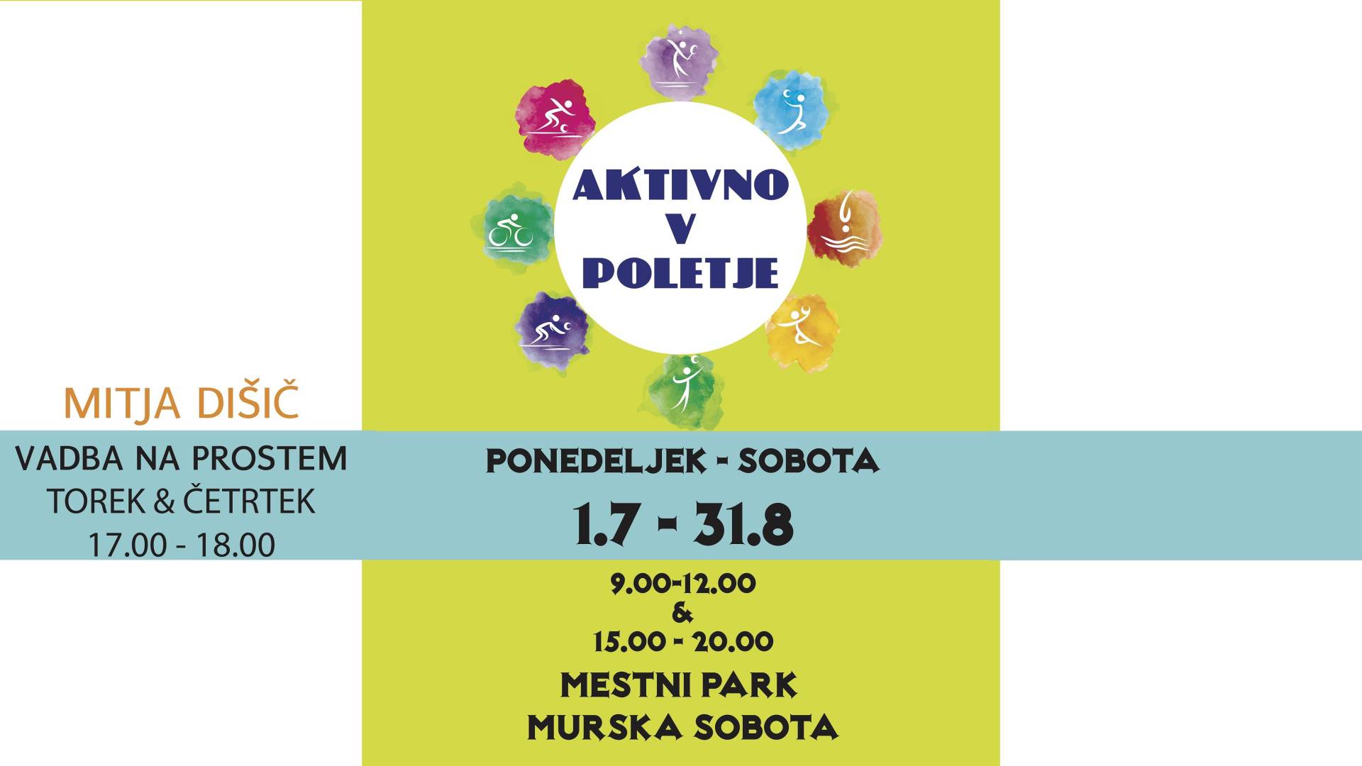 Mestni park Murska SobotaAktivno v poletje je prireditev, ki jo organizira MIKK in se bo izvajala od 1. julija 2017 do 31. avgusta 2017, vsak dan med 9:00 - 12:00 in 15:00 – 20:00, vse dni v tednu razen ob nedeljah in praznikih.