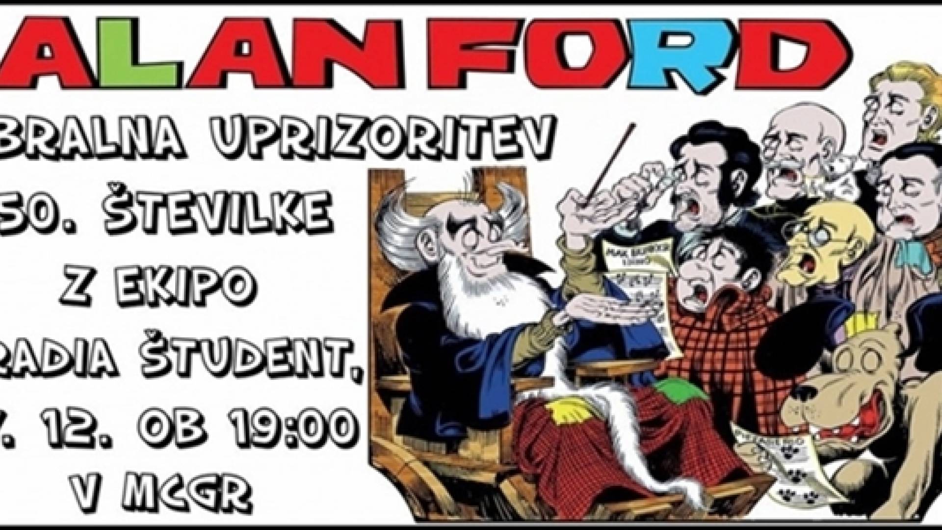Ob petdesetletnici Alana Forda bodo špikerji in tehniki Radia Študent, s pomočjo projekcij stripa na platnu, svojih glasov, zvočnih efektov in glasbenih podlag, v Mladinskem centru Gornja Radgona uprizorili svojevrstno bralno interpretacijo petdesete številke kultnega italijanskega stripa.
