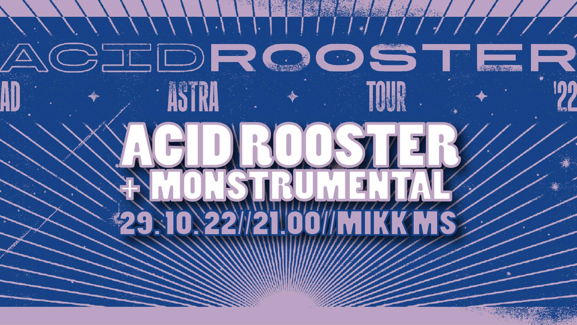 MIKK Murska Sobota in Močeradovec Sobota, 29. Oktober 2022 ob 21h Klubski prostor Vstopnina 5 EUR Alternativna godba: Acid Rooster, Monstrumental Acid Rooster ...