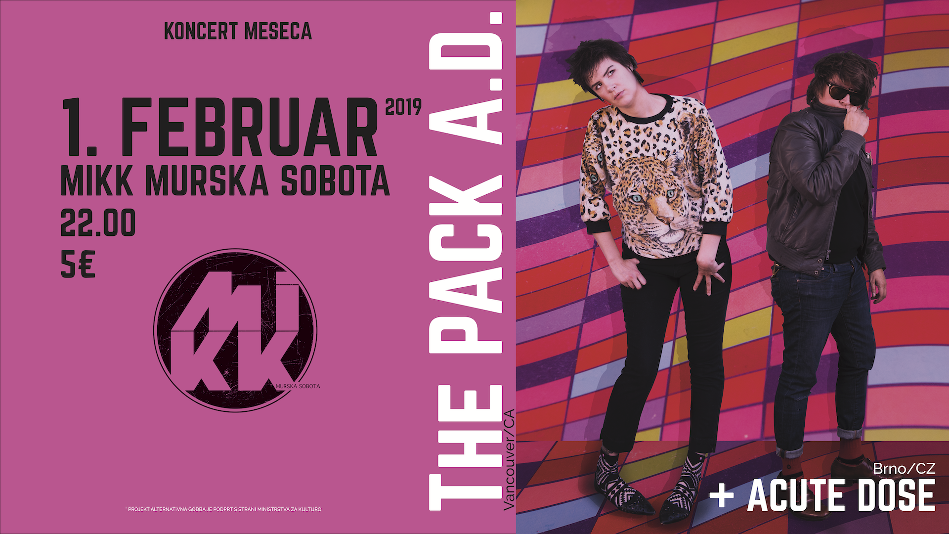 Takoj prvi dan februarja odpiramo s koncertom meseca, kjer nam ekskluzivno (edini koncert v celi ex-Yu) v goste prihaja sijajen kanadski "all girls" duo The Pack A.D., ki svoje garage blues korenine nadgrajuje z elementi popa in psihadelije. To bo njihovo prvo gostovanje v teh krajih!!