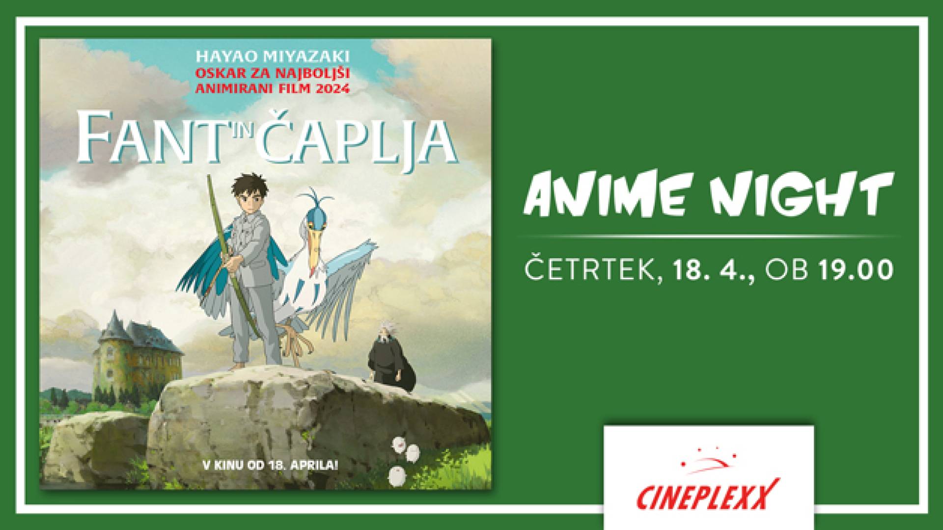 V kinu Cineplexx (Maximus) v Murski SobotiPridruži se nam na ANIME NIGHTU, s filmom Fant in čaplja, v četrtek, 18. aprila 2024 ob 19.00, v Cineplexxu Murska Sobota!
