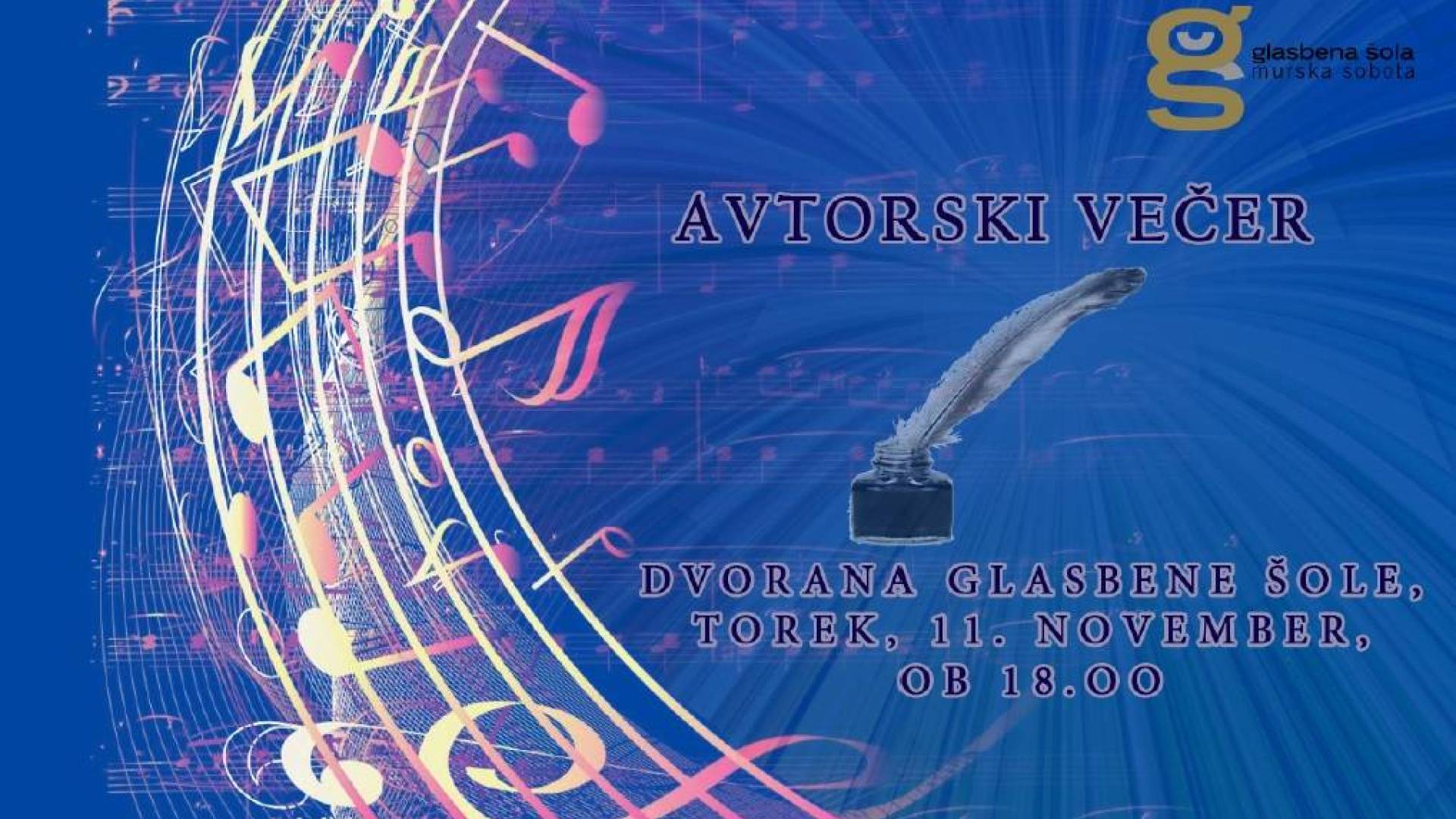 Dvorana glasbene šole Murska SobotaVljudno vabljeni na AVTORSKI VEČER, ki bo v torek, 11. novembra 2014, ob 18.00, v dvorani glasbene šole Murska Sobota.