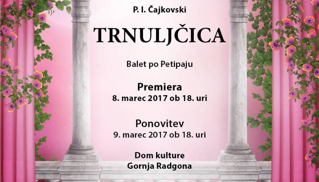Dom kulture Gornja RadgonaGlasbena šola Gornja Radgona tudi letos pripravlja pravljično baletno predstavo. 89 nastopajočih bo po Petipaju uprizorilo Trnuljčico Petra Iljiča Čajkovskega.