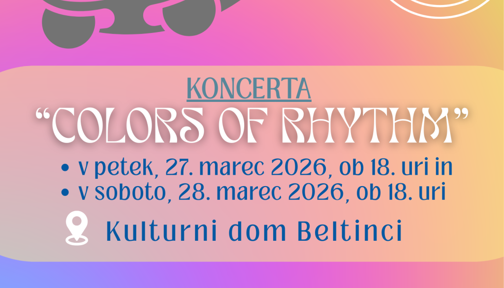 Kulturni dom BeltinciV Beltincih letos prvič gostimo mednarodno srečanje tolkalcev, ki bodo ob zaključku vsako dnevne delavnice ob večerih svoje ideje in barvitost tolkal predstavili publiki. Oba koncerta bosta postregla z zvokom, ki ga ne slišimo prav pogosto med nami. V petek se bodo predstavile šolske, srednješolske zasedbe, v soboto pa še odrasle skupine iz Slovenije in tujine. Vstop je prost!