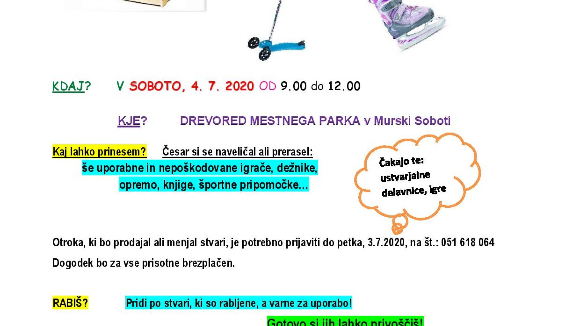 Imate stvari, ki jih več ne rabite, a so še varne za uporabo? Gotovo so se vam nakopičile številne stvari: igrače, rolke, skiroji, drsalke, čelade, dežniki, CD-ji,… ki so še varne za uporabo.