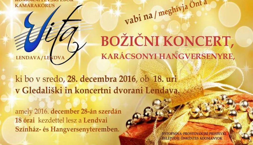 Gledališka in koncertna dvorana LendavaVljudno vabljeni na božični koncert KPZ Vita Lendava, 28. 12. 2016, ob 18. uri v Gledališki in koncertni dvorani Lendava.