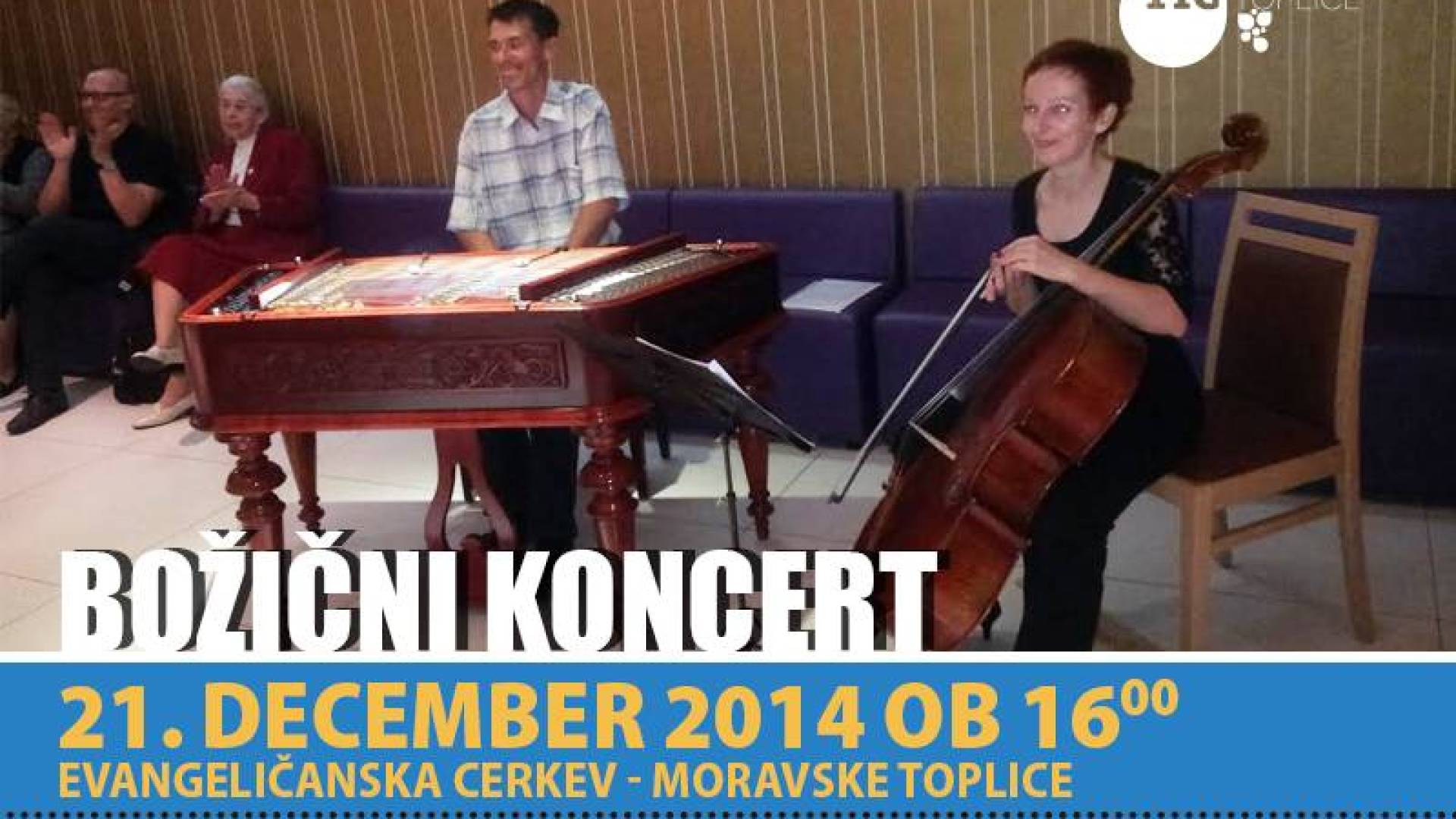 Moravske Toplice - evangeličanska cerkevZbirali se bodo prostovoljni prispevki za potrebe društva paraplegikov (nakup kombija) in društva slepih in slabovidnih. Gostje: cimbalist Darko Kržanko in čelistka Valerija Šömen ter učenci OŠ Bogojina (mladinski pevski zbor, deška vokalna skupina in mladi recitatorji).