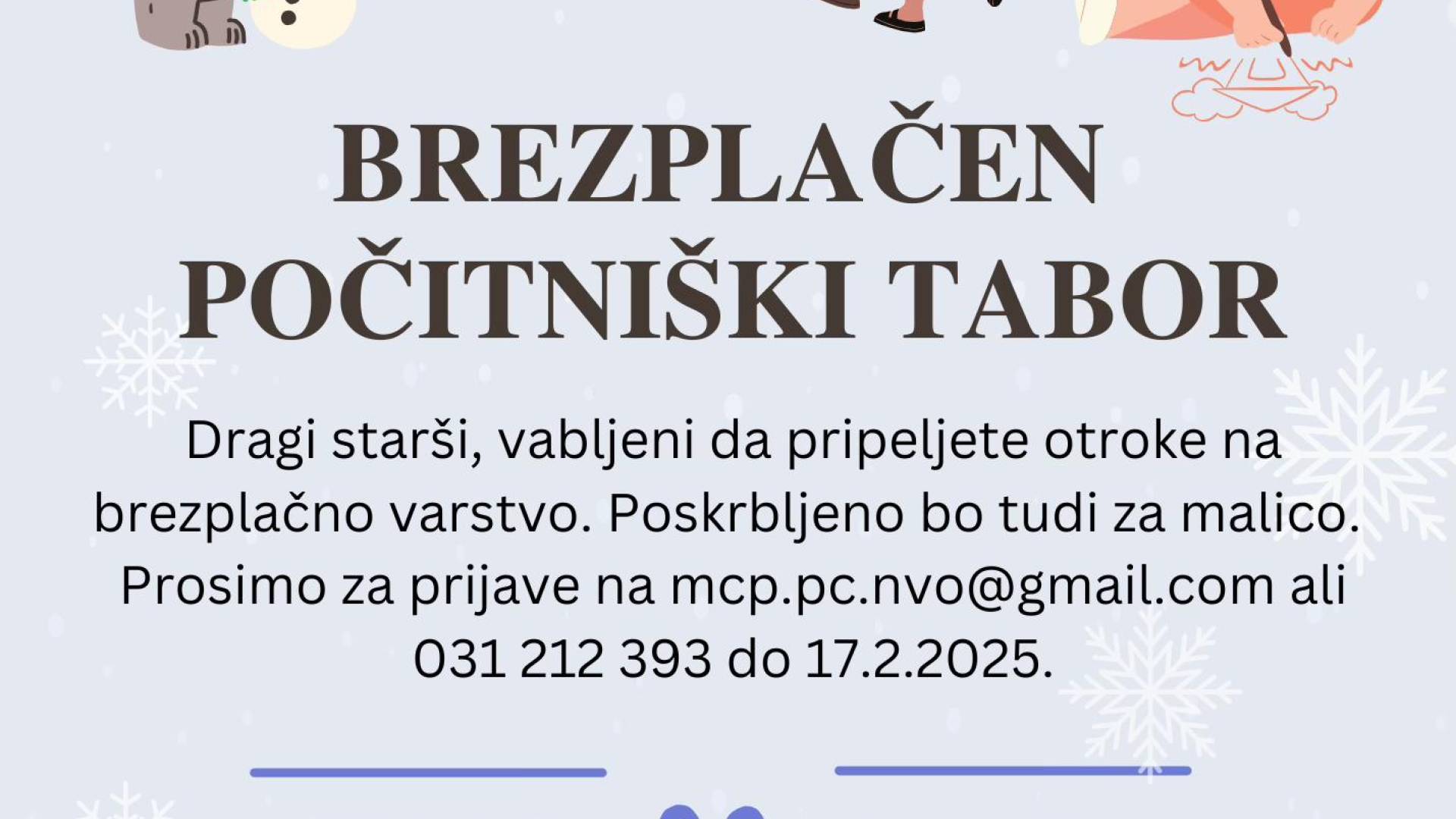 Mladinski center Prlekije-Pokrajinski center NVODragi starši, vabljeni da pripeljete svoje otroke na brezplačno počitniško varstvo: od 7.00 do 15.00 ure 20.2.2025.