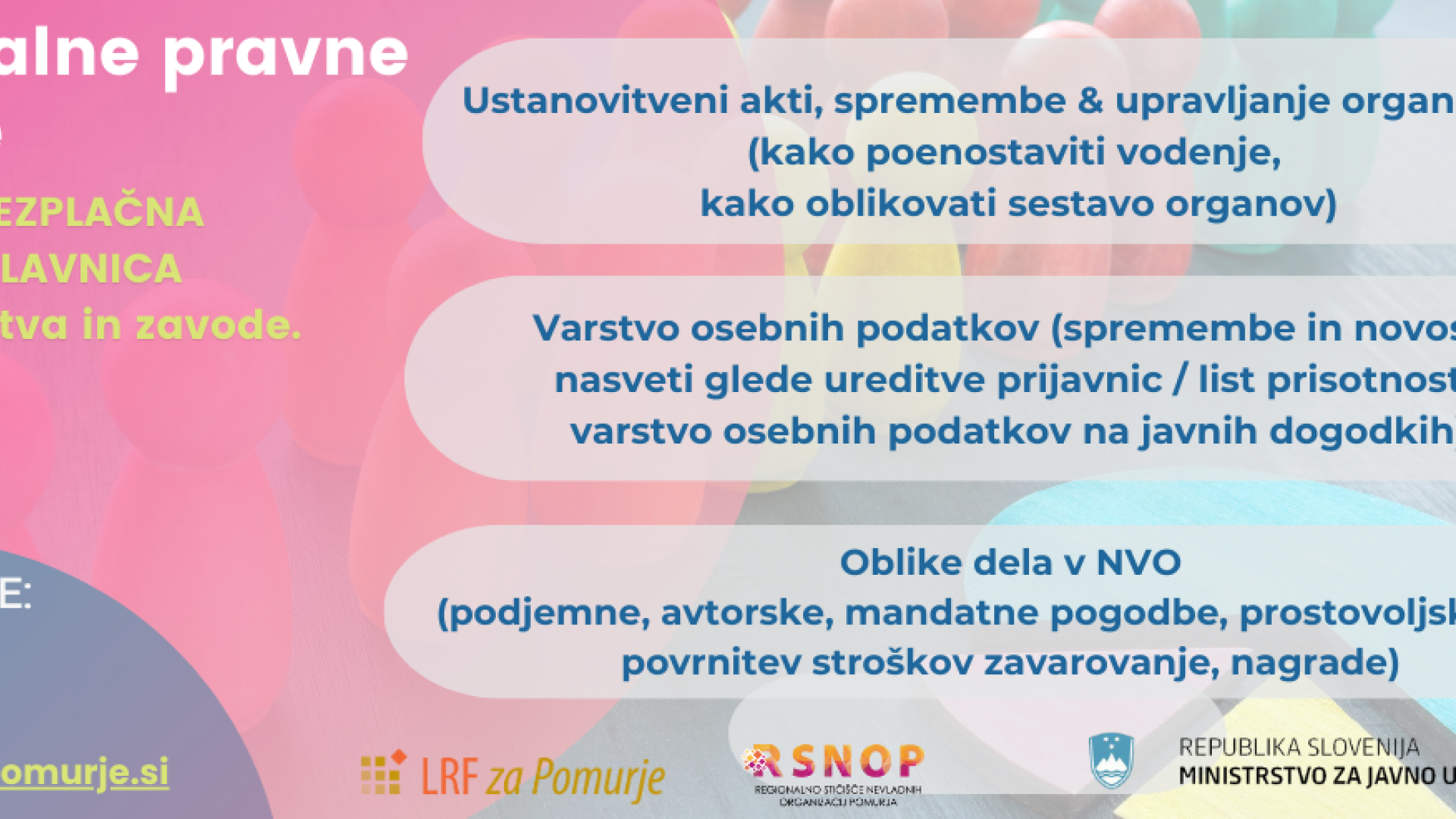 Brezplačna delavnica za društva in zavode: Aktualne pravne teme – statuti, varstvo osebnih podatkov ter oblike dela