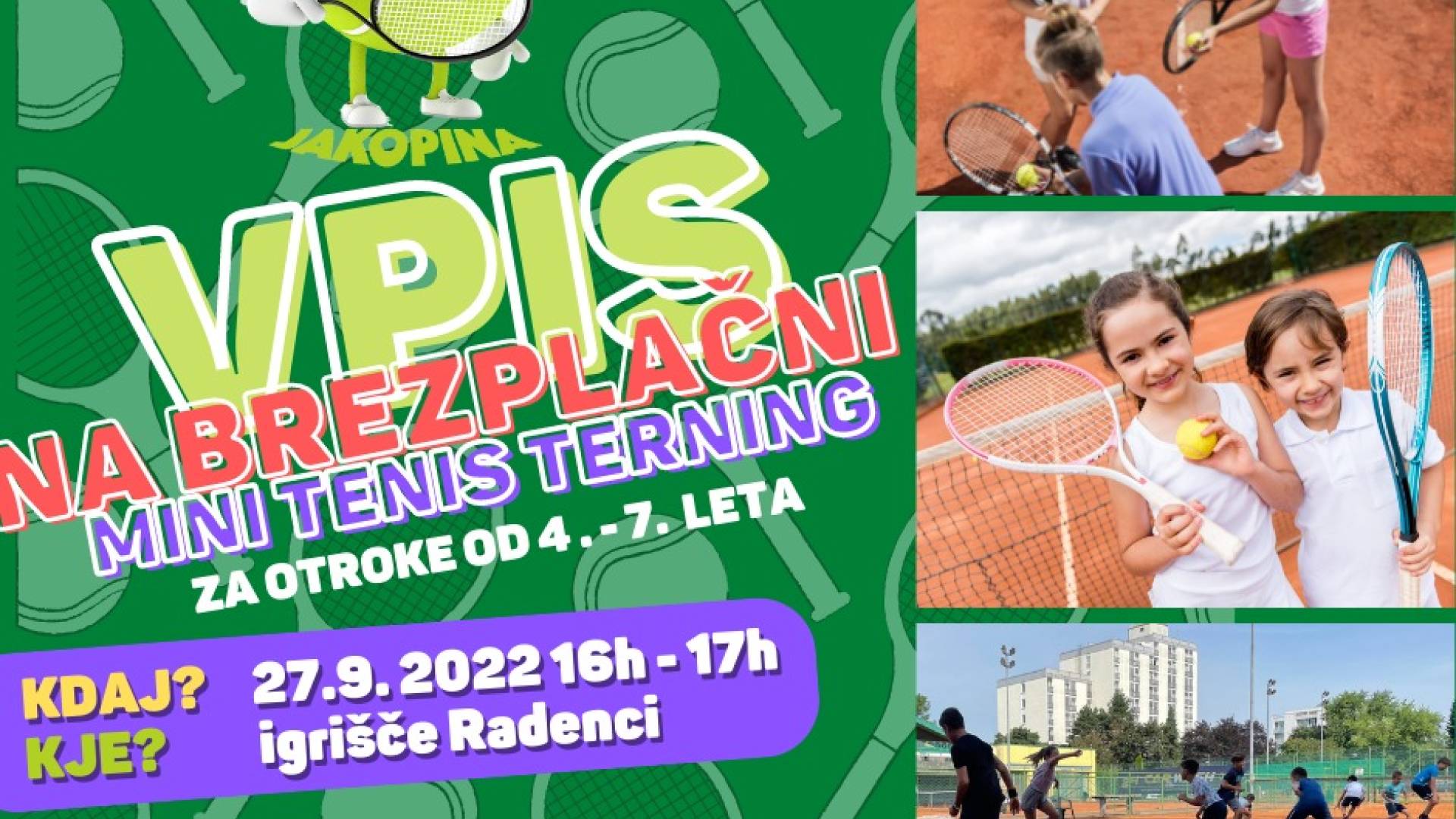 TENIŠKI CENTER RADENCI📣VPIS NA BREZPLAČNI MINI TENIS TRENING, KI BO POTEKAL V TENIŠKI ŠOLI Teniška šola Jakopina Radenci ZA OTROKE 4. - 7. LETA
