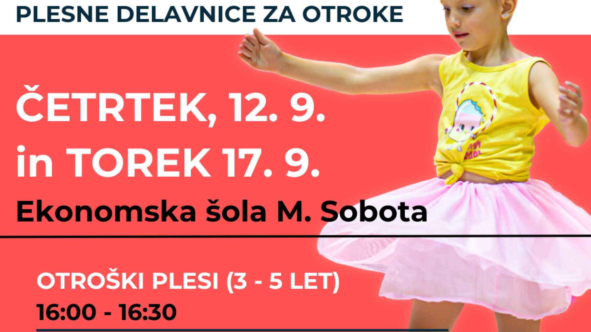 Ekonomska šola Murska SobotaIščete zabavno in aktivno dejavnost za svoje otroke? 👶 Pridružite se nam na naših brezplačnih predstavitvenih plesnih delavnicah za otroke in se spoznajte s plesom! 💃🕺