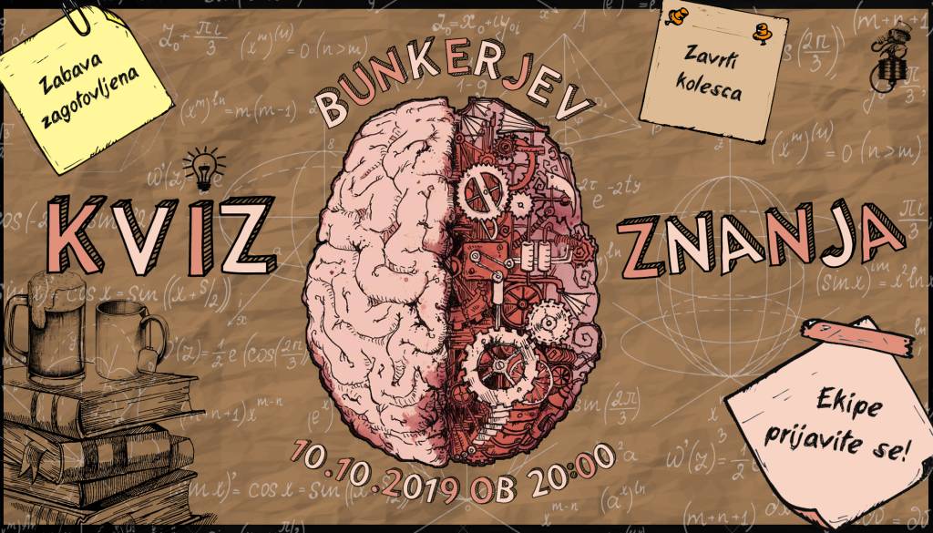 POMEMBNO: Kviz bomo izvedli, če bo do 09. 10. 2019 prijavljeno minimalno 5 ekip. Po potrditvi dogodka je možna prijava tudi do ene uro pred kvizom na dan dogodka.