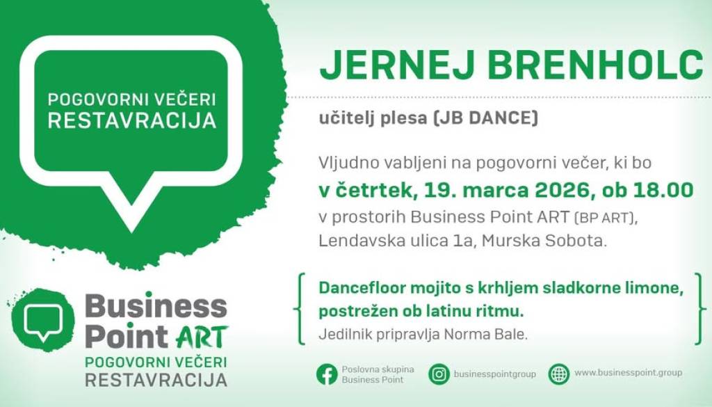 Business Point ART, Murska Sobota👉 𝗣𝗼𝗴𝗼𝘃𝗼𝗿𝗻𝗶 𝘃𝗲č𝗲𝗿𝗶 𝗥𝗲𝘀𝘁𝗮𝘃𝗿𝗮𝗰𝗶𝗷𝗮 𝘃 𝗕𝘂𝘀𝗶𝗻𝗲𝘀𝘀 𝗣𝗼𝗶𝗻𝘁 𝗔𝗥𝗧