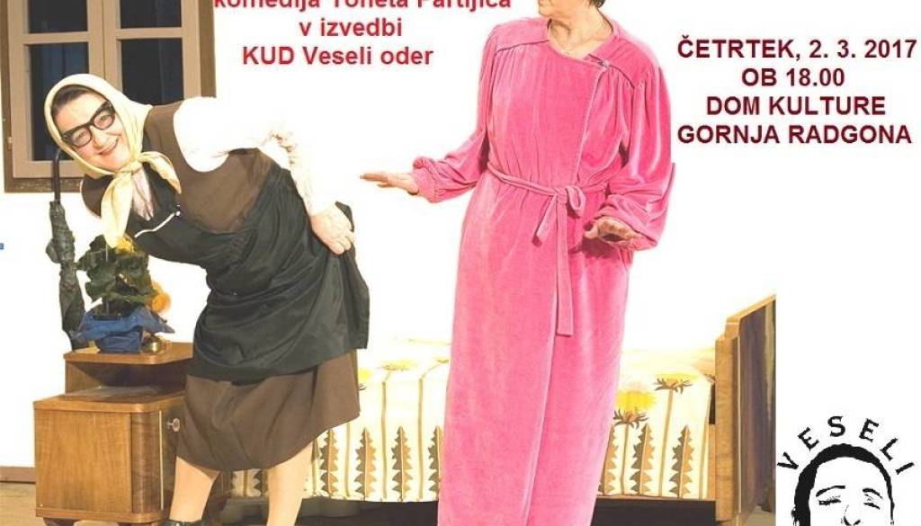 Dom kulture Gornja RadgonaVabljeni na gledališko predstavo v izvedbi Kulturno umetniškega društva Veseli oder iz Ptuja, ki bo ob 18. uri v Domu kulture Gornja Radgona.