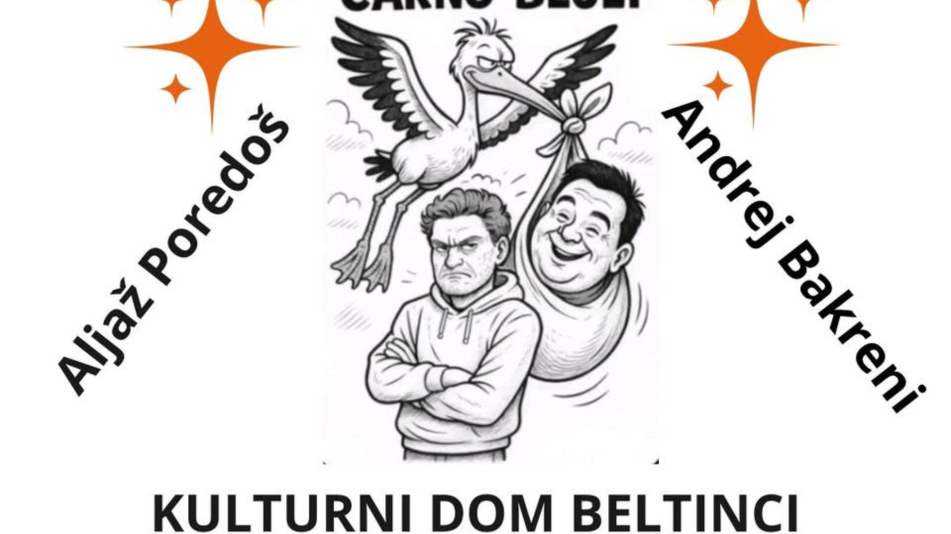 Kulturni dom BeltinciSobotni večer bomo preživeli na poseben način! Na oder kulturnega doma Beltinci prihajata lokalna komika Aljaž Poredoš in Andrej Bakreni s svojim stand upom Čarno Bejli! 🎭🤩