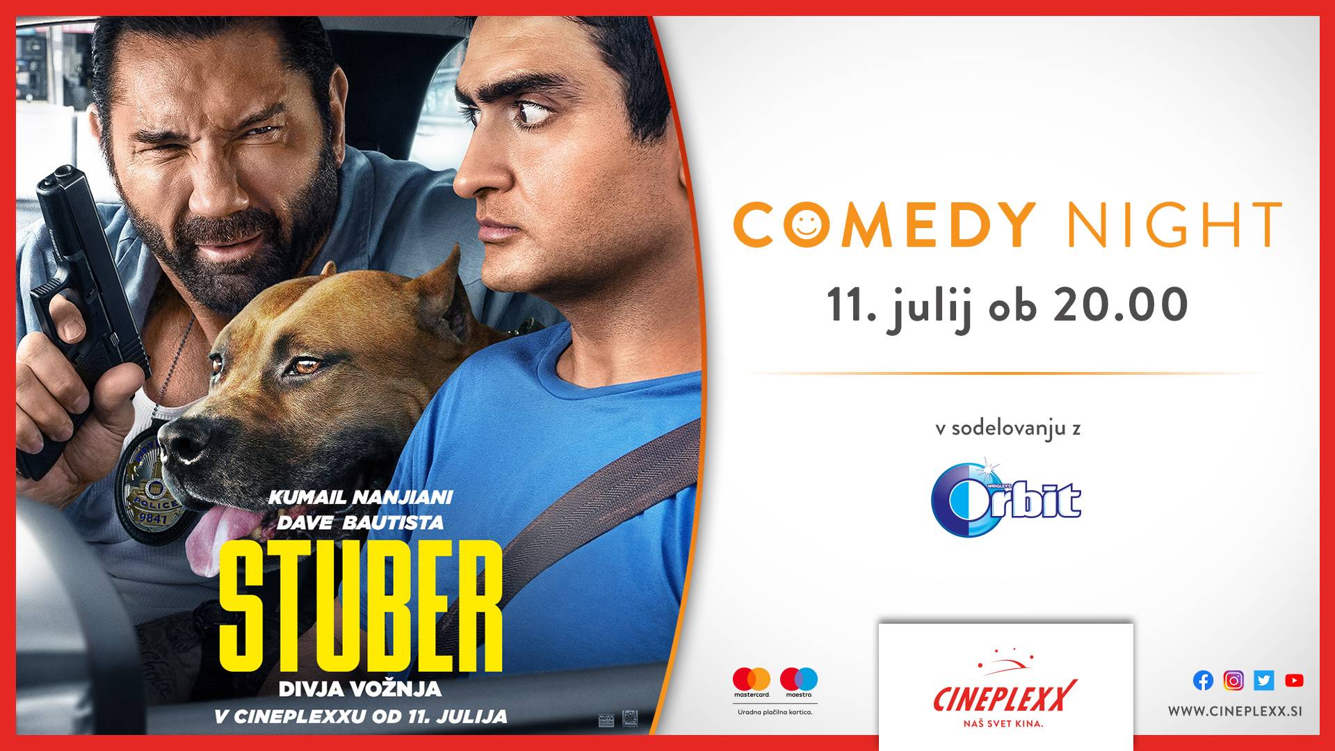 V kinu Cineplexx (Maximus) v Murski SobotiNe zamudite TOP komedije tega poletja. Pridružite se nam na Comedy nightu s filmom STUBER – Divja vožnja, ki bo v četrtek, 11. julija ob 20.00 v vseh Cineplexx kinih.