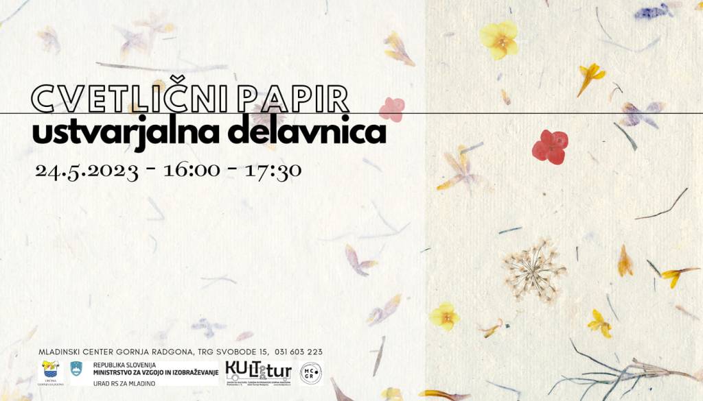 Mladinski center Gornja RadgonaV sredo, 24. 5. nadaljujemo z delavnicami, kjer se trudimo ustvarjati po konceptu zero-waste, torej brez odpadkov. Tokrat bomo združili uporabljen pisarniški papir in sušene cvetlice ter izdelovali recikliran Cvetlični papir. Ta se lahko uporabi za izdelavo voščilnic, posvetil, lahko se zloži v prav posebne kuverte, ali pa se zveže v zvezčiče. To pa je že predmet za naslednjo ustvarjalnico.