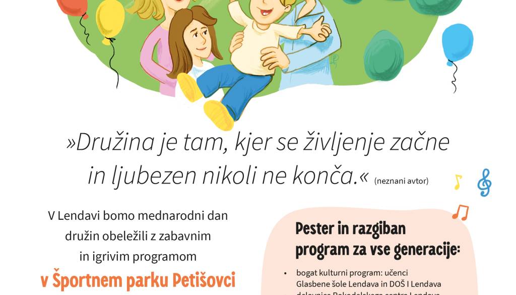 Športni park PetišovciV Lendavi bomo mednarodni dan družin obeležili z zabavnim in igrivim programom v Športnem parku Petišovci v soboto, 17. maja 2025.